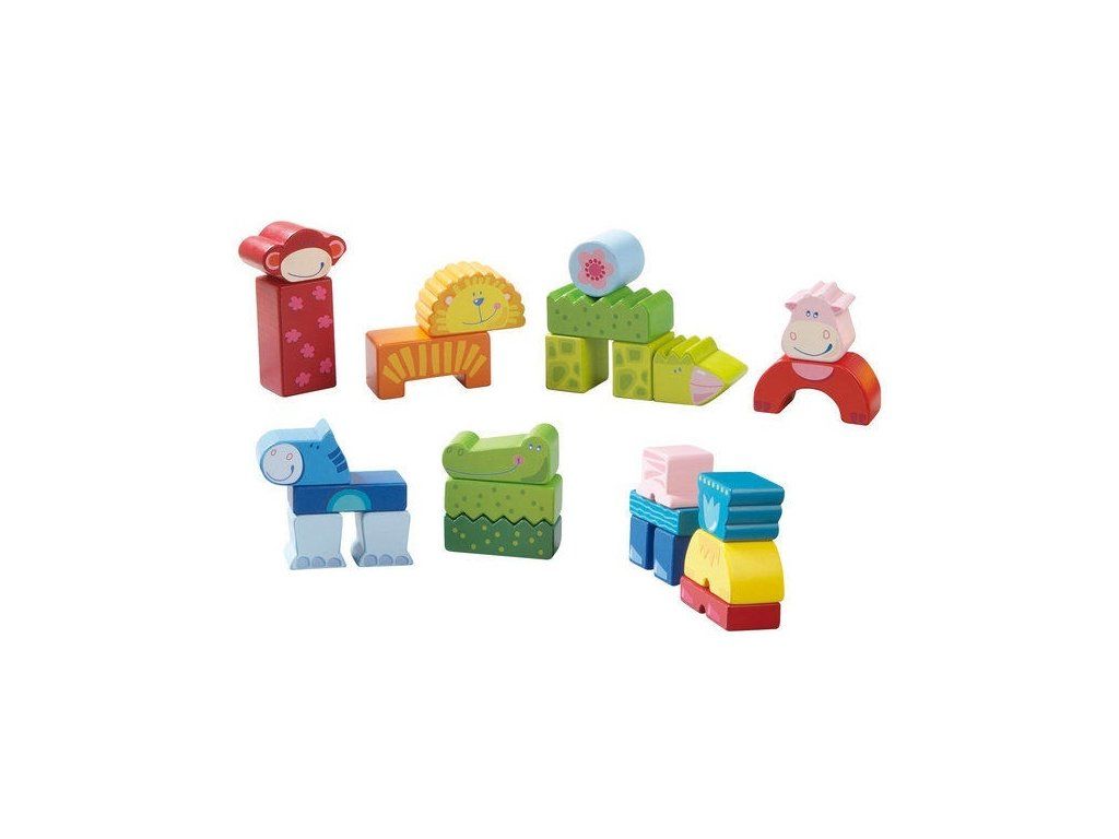 Vytvorte si farebné ZOO s kravičkou či opičkou! 25 častí vytvorených pre malé rúčky staviteľov začiatočníkov. Kvádre 8 x 4 x 4 cm z bukového dreva.