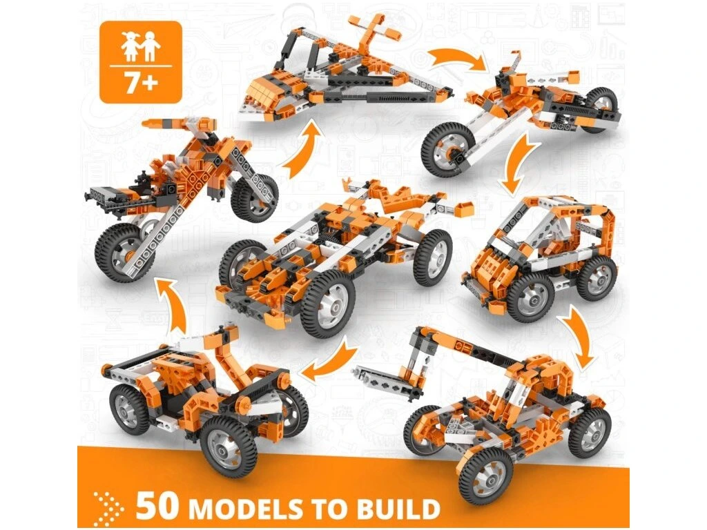 STAVEBNICA ENGINO INVENTOR 50 MODELOV MOTORIZOVANÝ SET - popusť uzdu svojej fanfázii a postáv celú škálu automobilov alebo motocyklov.