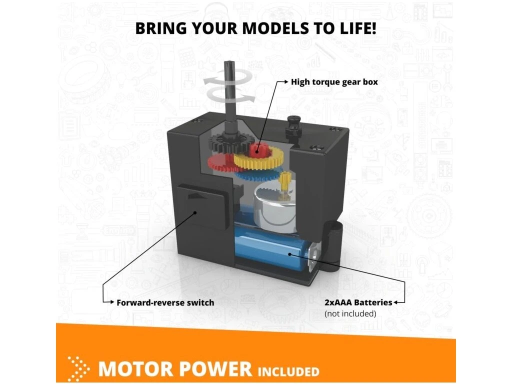 Väčšinu modelov môžeš poháňať dodávaným motorom s prevodovkou.