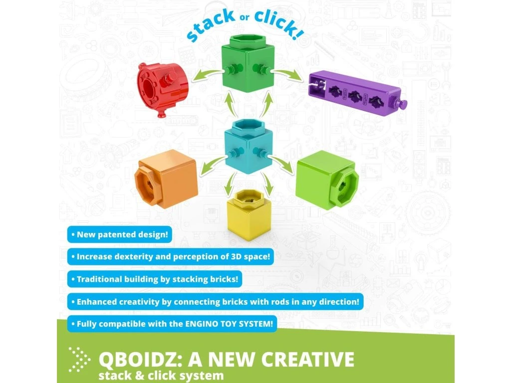 Nový systém Qboidz kombinuje ocenenú zaklapávaciu konektivitu systému Engino s jednoduchou stavbou stohovateľných blokov!