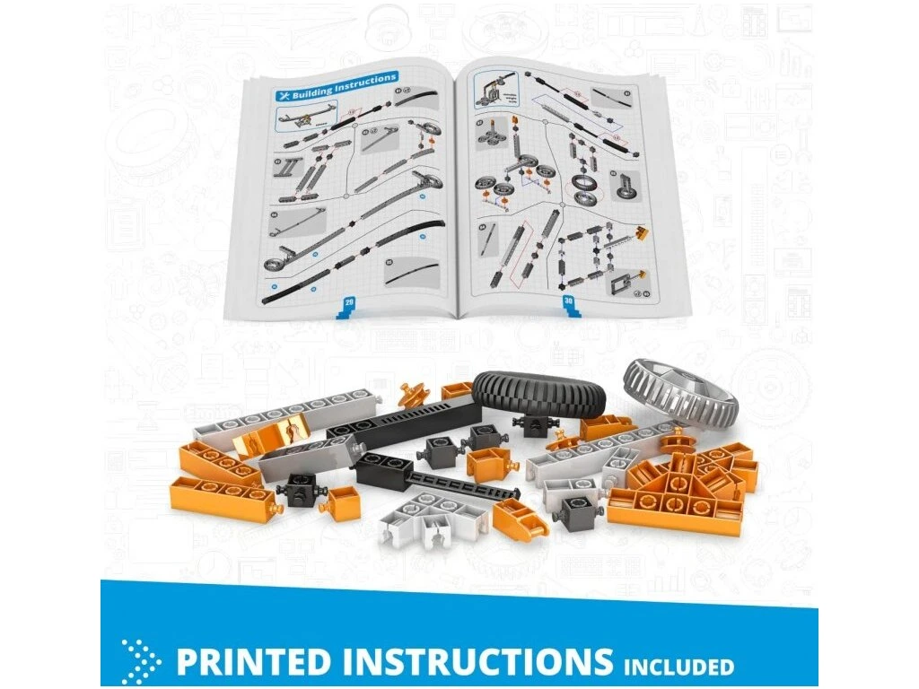 Postavte si 60 pracovných modelov, ktoré pokrývajú témy ako páky, klin, koleso a náprava, skrutka, naklonená rovina, kladka, ako aj pokročilejšie prevody a spojenia!