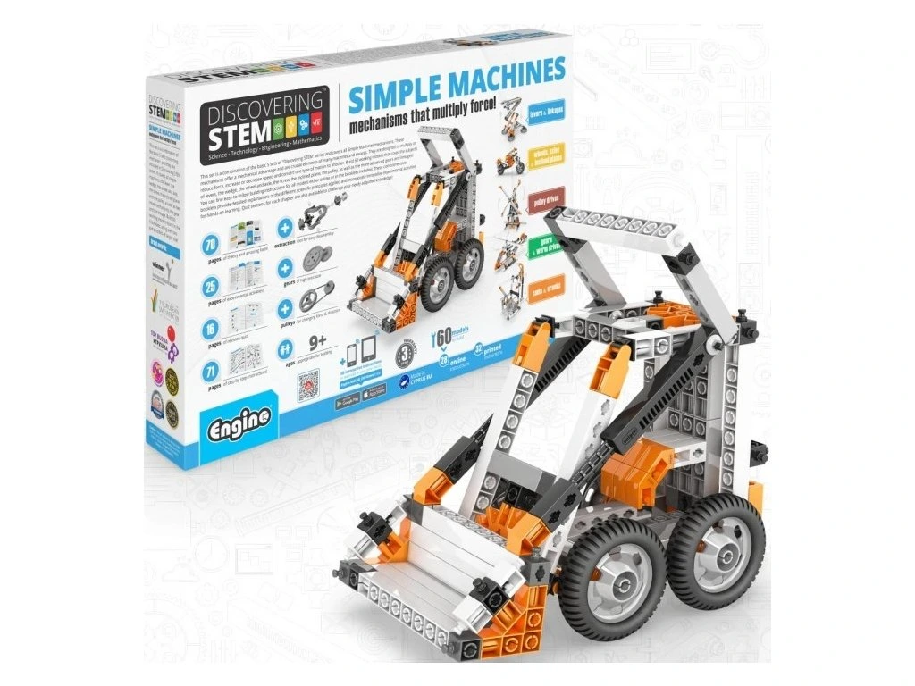Táto sada je kombináciou základných 5 sád zo série „Discovering STEM“ a pokrýva všetky jednoduché mechanizmy strojov.