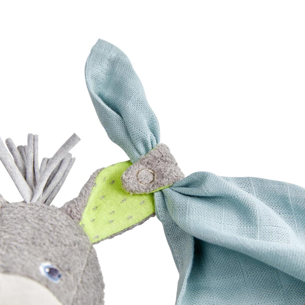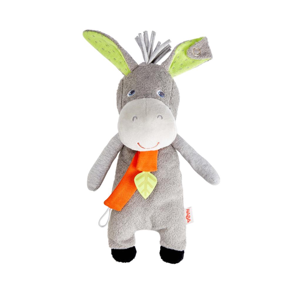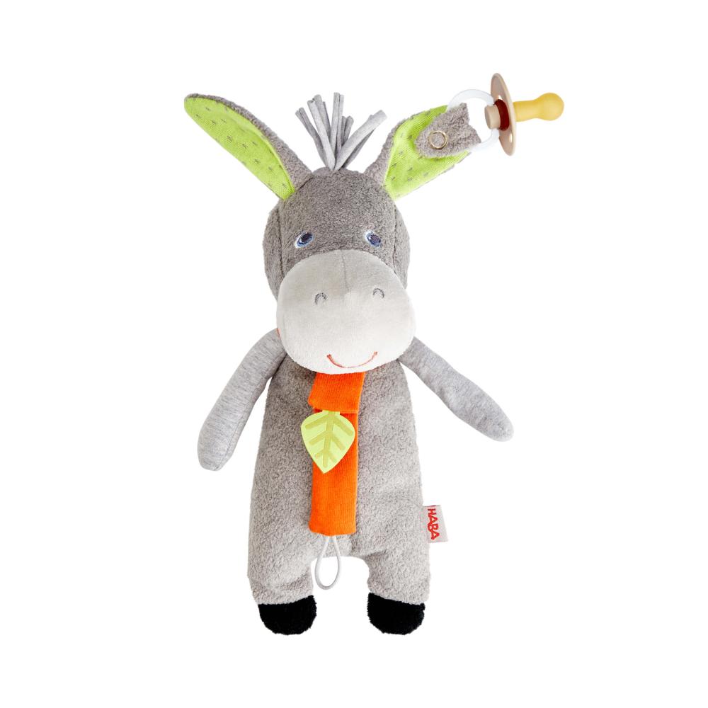 Plyšový oslík má obľúbené doplnky bábätka vždy pri sebe – možnosti pripevnenia na ucho a šatku to umožňujú. Po období cumlíka zostáva pre najmenších vernou plyšovou hračkou.