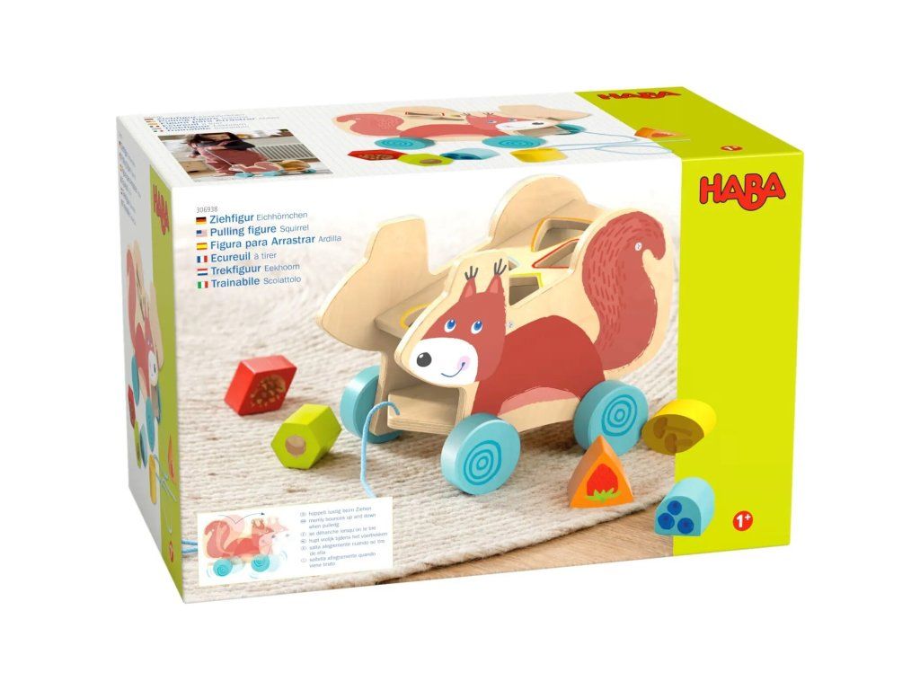 Haba Ťahacia hračka s vkladacími tvarmi - veverička