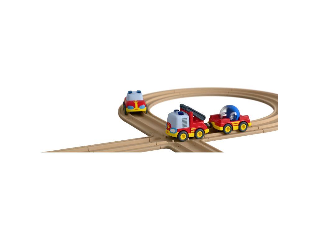 Táto akčná sada obsahuje dve robustné hasičské autíčka so silným zotrvačníkovým motorom – úplne bez batérií – a prívesný vozík s magnetickou spojkou.
