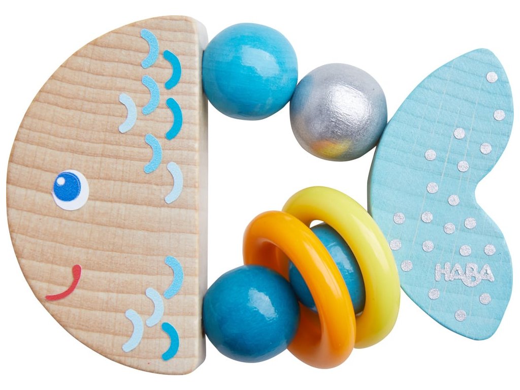 Haba Drevená hrkálka a motorická hračka pre najmenších Rybka