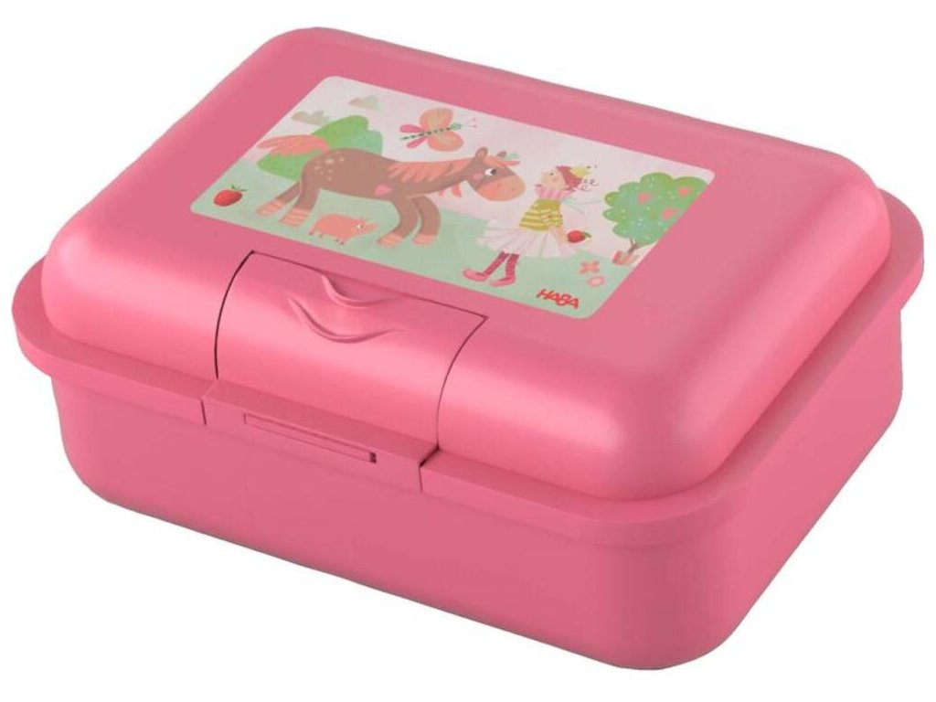 Krabička je ideálna na uloženie desiaty do škôlky, školy alebo na výlet. Ružová krabička má praktickú deliacu priehradku, čo umožňuje oddelené uloženie rôznych potravín a obsah sa počas prepravy nešmýka. HABA Lunch Box je to pravé pre malý snack medzi jedlami. Roztomilý motív vyvoláva v deťoch hlad po malom občerstvení! Čo poteší aj mamu a otca je, že obedový box je vhodný do umývačky riadu, a preto je po rýchlom vyčistení pripravený na nové použitie.