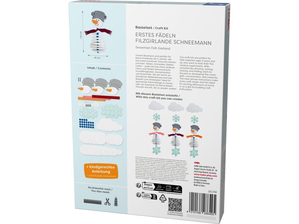 Haba Kreatívna sada Prvé navliekanie plstená girlanda Snehuliak