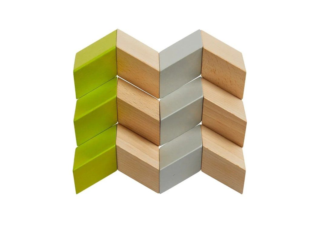 Kreatívna stavebnica pre deti od 5 rokov. Kocky sa síce skladajú neobvyklým spôsobom, ale deti rýchlo prídu na to, ktorá zo strán stavebných dielikov s rôznymi uhlami k sebe patrí, tak aby reprodukovali vzor podľa šablóny. Kocky možno skladať aj podľa vlastnej fantázie a vytvárať tak neobvyklé obrazce. Stavebnica umožňuje skladať obrazce v početných variáciách. Hra podporuje logické myslenie, jemnú motoriku a priestorovú predstavivosť. Obsah balenia: