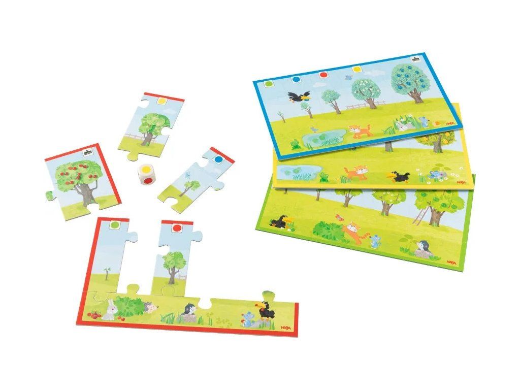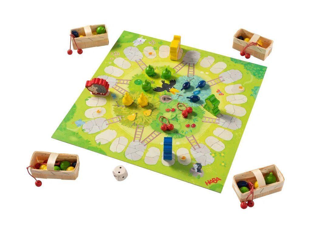 Je čas zberu úrody v sade. Jablká a hrušky, čerešne a slivky sú zrelé. Ale vážení, drzý havran chce ukradnúť ovocie! Poskakuje zo stromu na strom a chce všetko ovocie pre seba....
