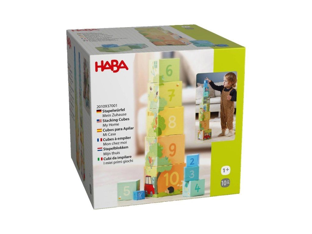 Extra nápad na hru: Kto nájde motívy na vrchu kociek na každom poschodí? Kocky sú vyrobené z pevného kartónu a deti ich ľahko uchopia, takže ich skladanie je zábavné. Dajú sa tiež rýchlo upratať, pretože sa dajú naskladať do seba a zanechajú za sebou veľkú kocku.