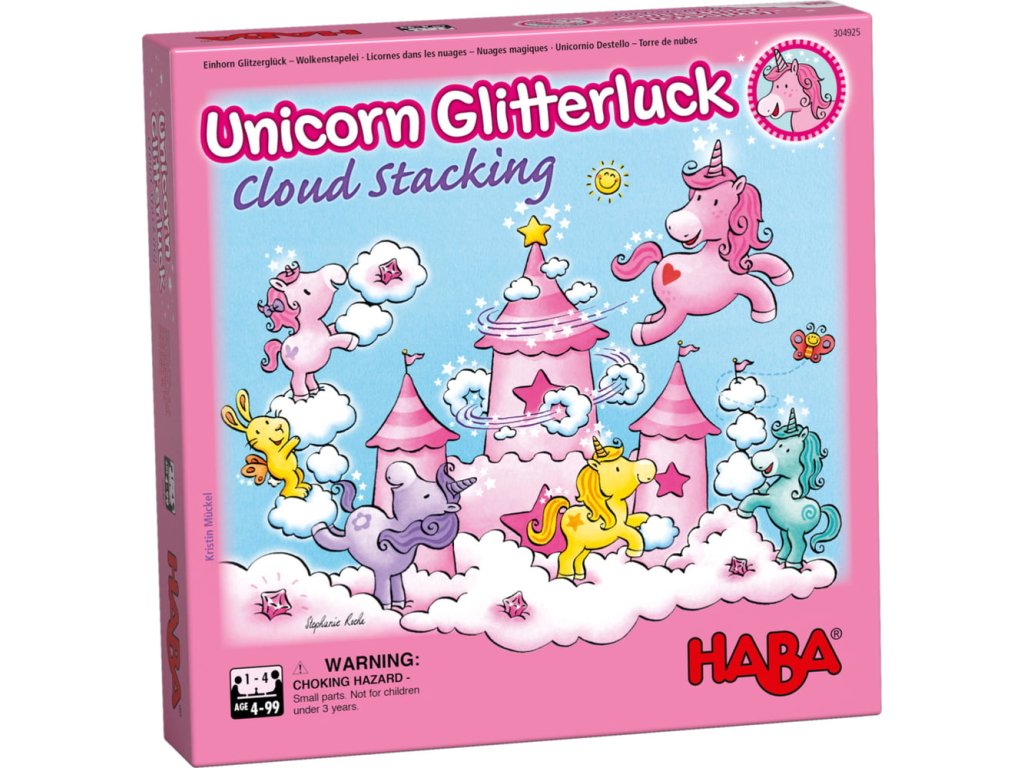 Hra obsahuje: 4 jednorožce: Trblietka (sýtoružový), Hviezdny prach (žltý), Čarokvietok (fialový) a Vrtuľka (tyrkysový), 1 mláďa jednorožca - Rosalie (svetloružová), 1 zámok v oblakoch, 5 veľkých bielych oblakov a 5 menších modrých oblakov, 1 kocka, 1 oblačný herný plán, 16 obojstranných doštičiek s oblakmi, 10 oblačných kryštálov a brožúra s návodom.
