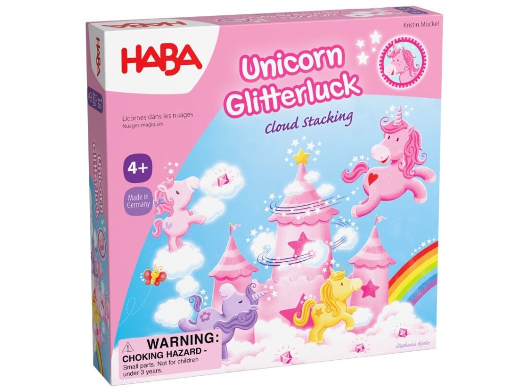Kooperativní hra – Jednorožci: Obláčkový zámek je kouzelná společenská hra pro 1 až 4 hráče od 4 let, která přenese děti do světa plného třpytu, obláčků a přátelství. Jednorožci Třpytivé štěstí, Rosalie, Čarovná květinka, Magický vír a Hvězdný prach žijí v nádherném obláčkovém zámku, kam každý den přicházejí jejich kamarádi. Ale ouha – na zámku začíná docházet místo! Jednorožci proto musí spojit síly, posbírat růžové krystaly a společně přistavět nové věžičky.
