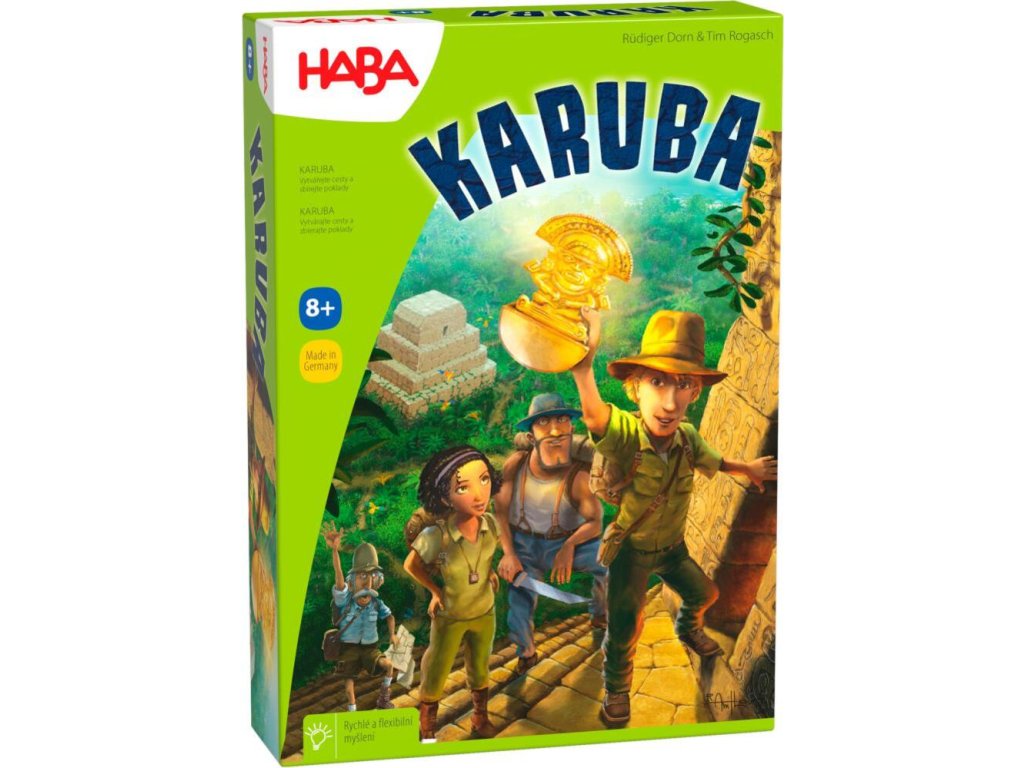 Pestrá a zábavná hra pre 2 až 4 hráčov od 8 do 99 rokov. Po dlhej plavbe loďou sa dobrodruhovia dostali na ostrov Karuba a môžu vyraziť na lov skrytých pokladov. Len čo dorazíte na ostrov, každý hráč povedie vlastný expedičný tím štyroch dobrodruhov. Musíte prejsť džungľou, nájsť cestu a chrámy ako prvý.