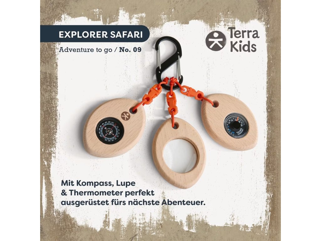 Haba Terra Kids Adventure Kompaktné trio so skobou - kompas, lupa, teplomer