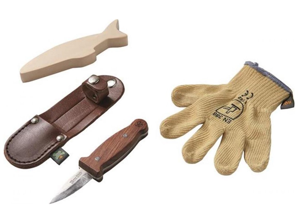 Je uložený v praktickom koženom puzdre. Rukavica je vhodná pre deti od 6 do 10 rokov a poskytne bezpečie pri práci pre ľavákov aj pravákov. Nôž je vhodné používať pod priamym dohľadom dospelých.