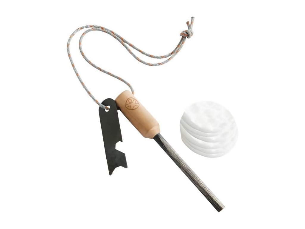 Obsah balenia:– 1 kresadlo– 1 tyč na kresanie– 6 vatových tampónov napustených voskom