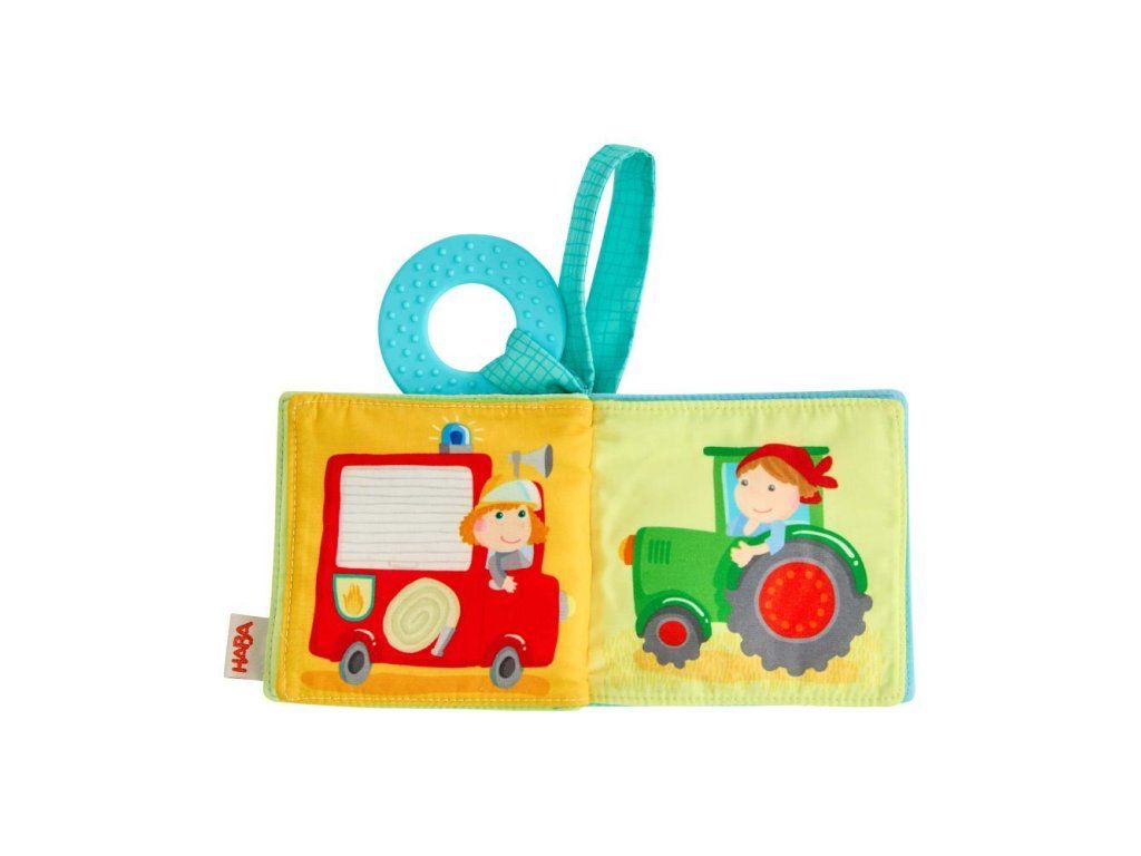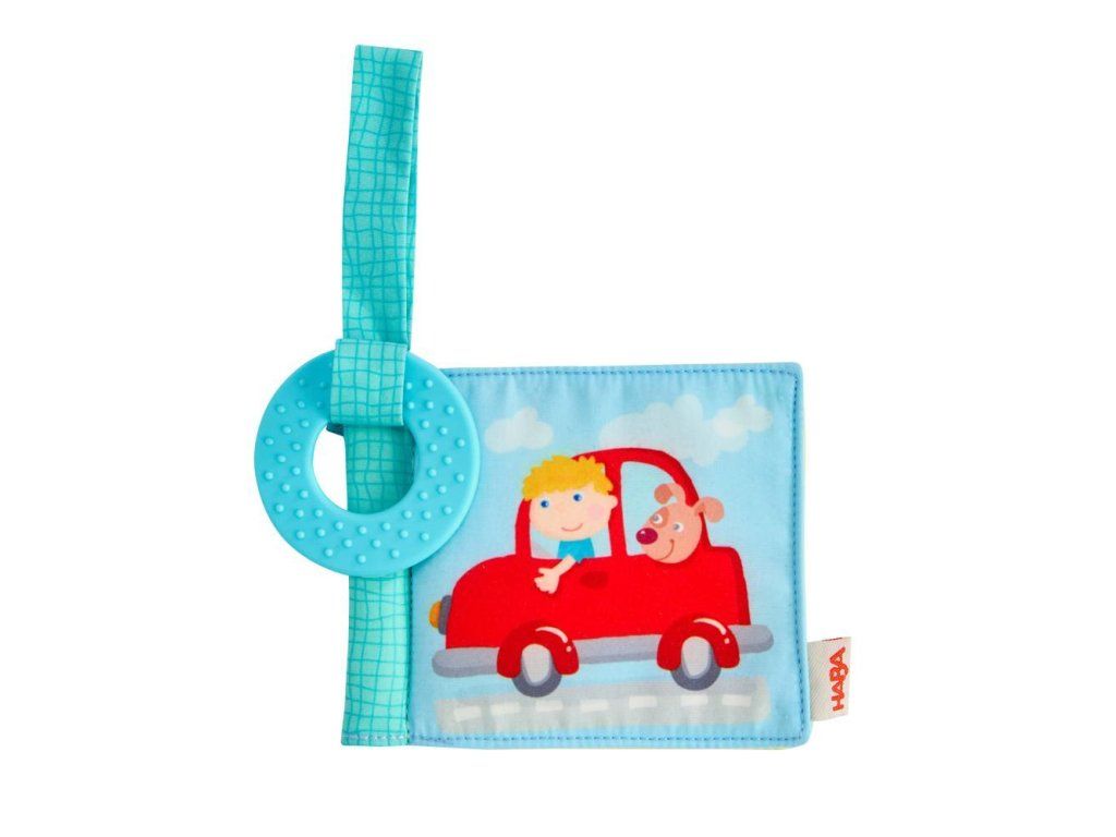 Haba Textilná kniha do kočíka s hryzátkom Dopravné prostriedky