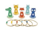 Plechovková hra s ilustráciami lesných tvorov, zložená zo 6 kovových plechoviek a 2 penových guľôčok:...