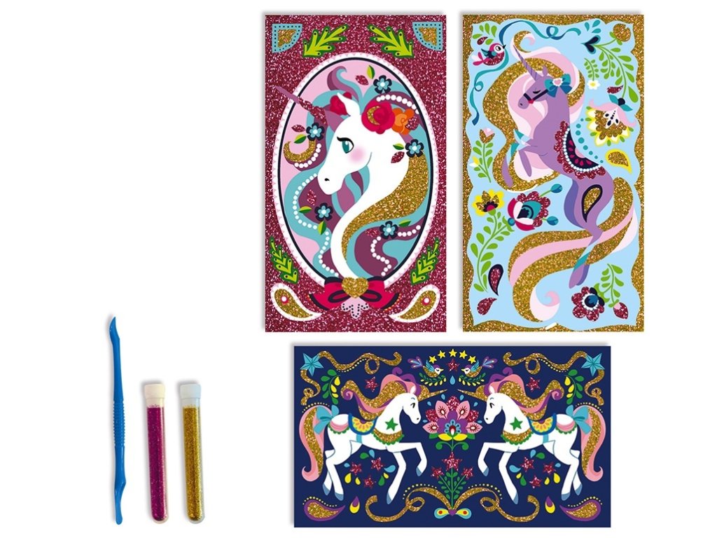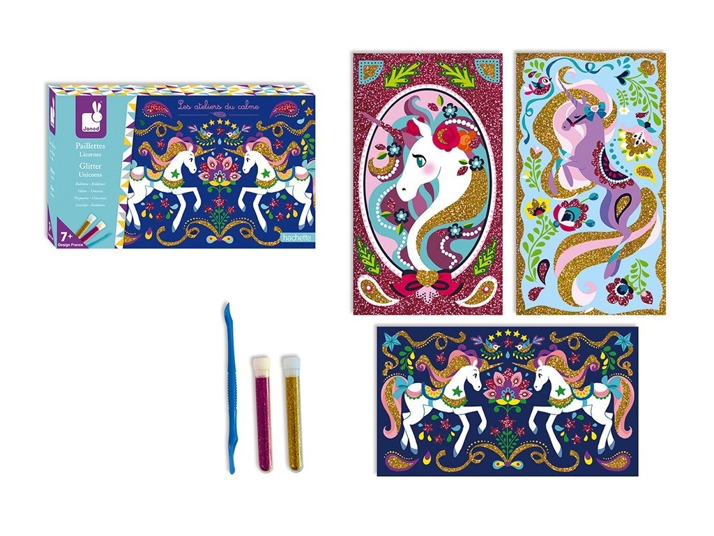 Janod Atelier Jednorožec farebný piesok s trblietkami Sada Midi