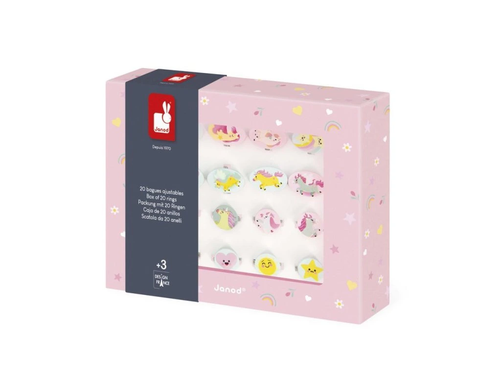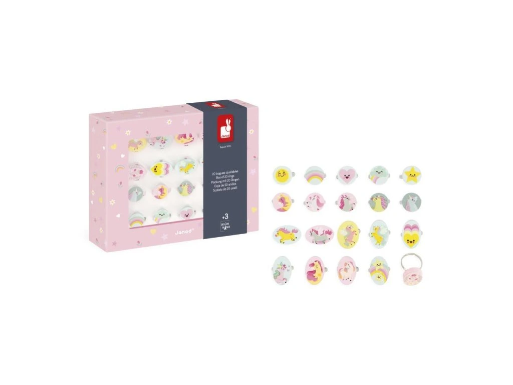 Janod Atelier Jednorožec Sada šperkov Nastaviteľné prstene 20 ks
