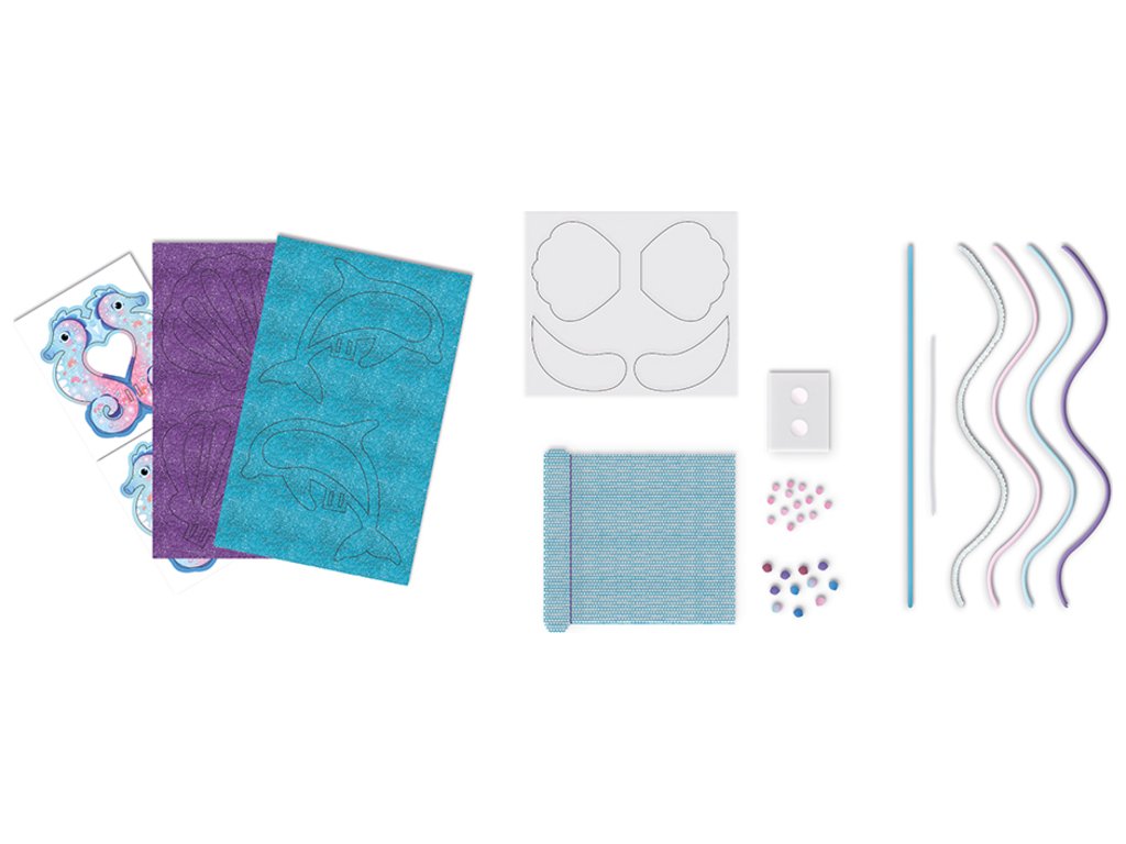 Na morskom dne... Táto sada na tvorenie sa dá použiť na ozdobenie 3 obrázkov morských panien trblietkami! Obsahuje 3 obrázky s vyznačenými oblasťami na ozdobenie (21 x 25 cm), 2...