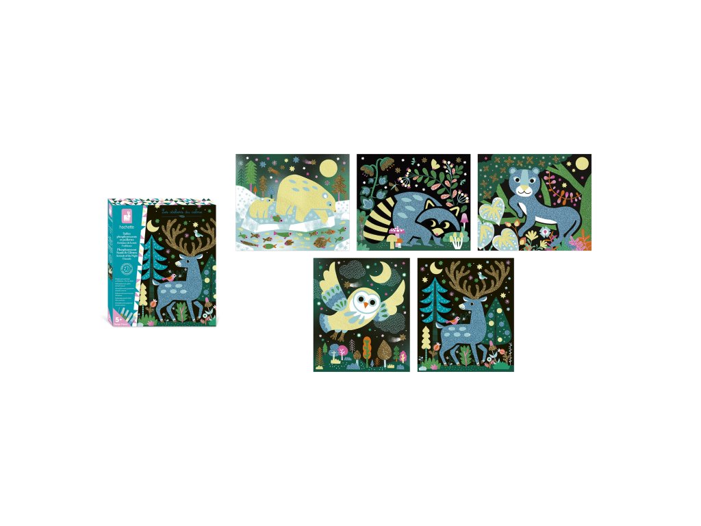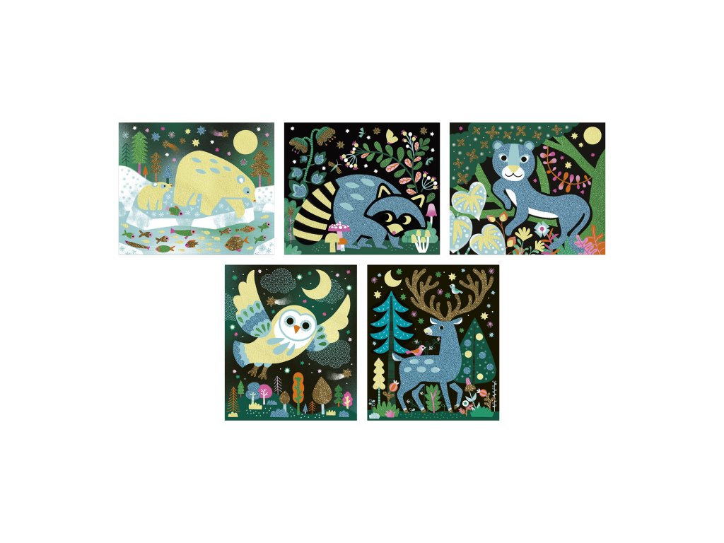 Janod Atelier Kreatívna sada Maxi Zvieratká v noci Trblietavé piesky