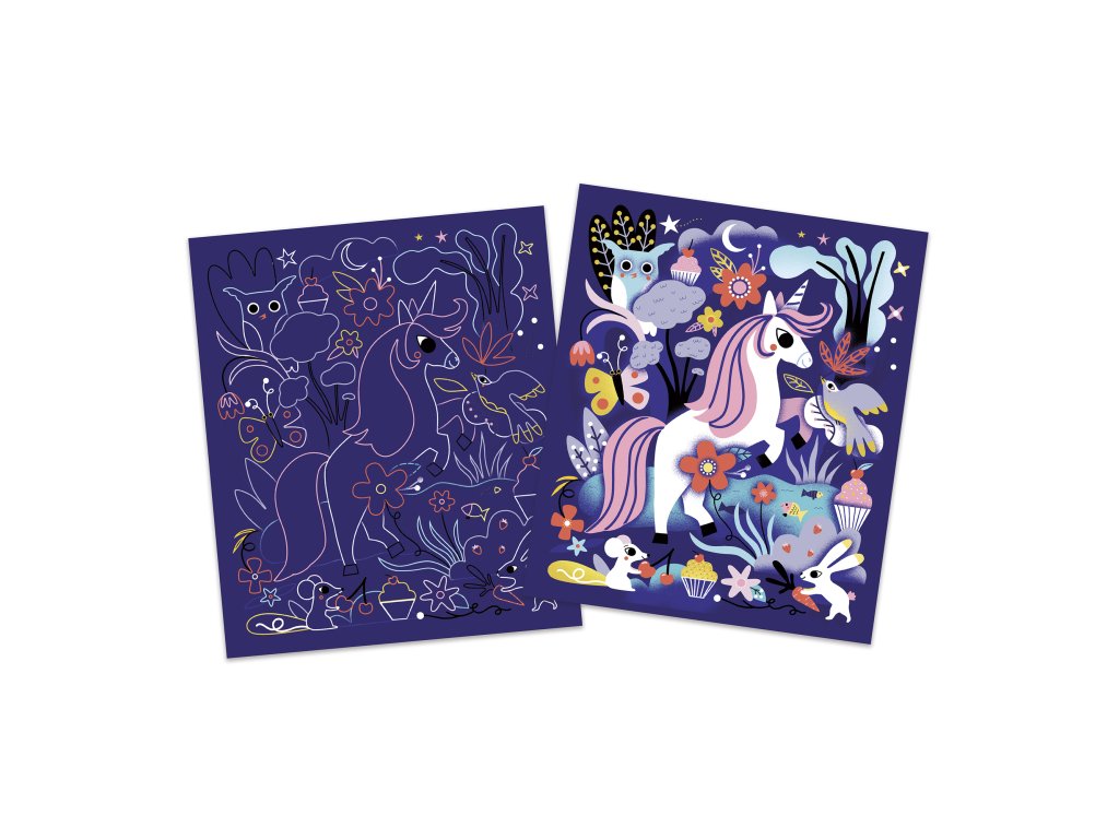 Janod Atelier Kreatívna sada Mini Jednorožci Vyškrabovanie a Lapač slnka