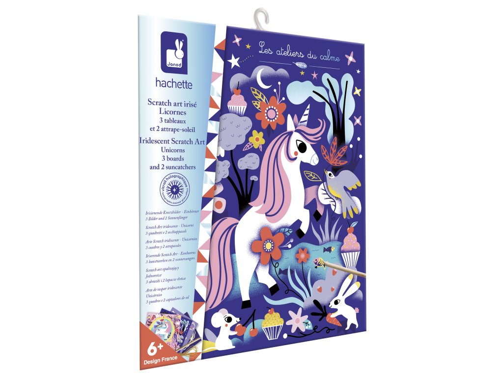 Kreatívna sada vyškrabovacie obrázky Kone a Jednorožce Janod Atelier Maxi.Kreatívna sada na tvorenie Vyškrabovacie obrázky Kone a jednorožce rozvíja jemnú motoriku, trpezlivosť...