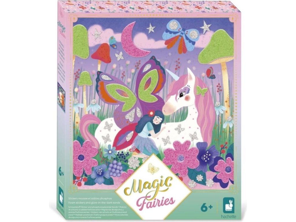 Janod Atelier Maxi Kreatívna sada Penové nálepky a svietiaci piesok Magické víly