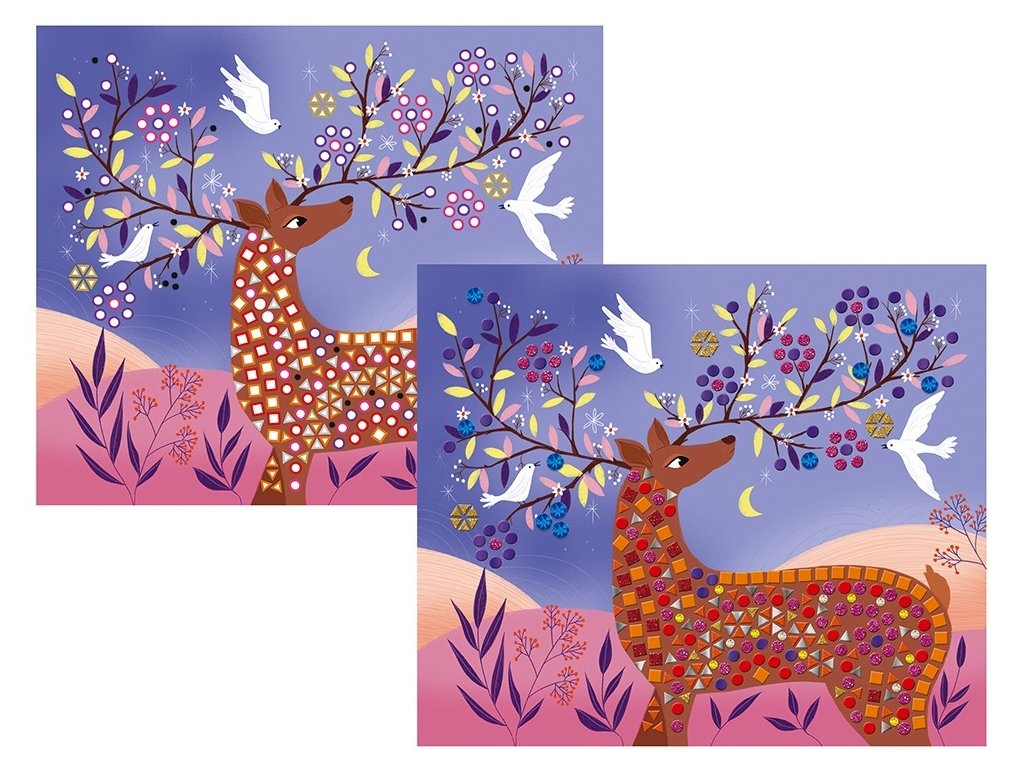 Táto sada na tvorenie zahŕňa zdobenie obrázkov zvierat kovovými nálepkami v tvare bodky. Obsahuje 4 podložky s rozmermi 20 x 20 cm (páv, dinosaurus, leopard a morská...