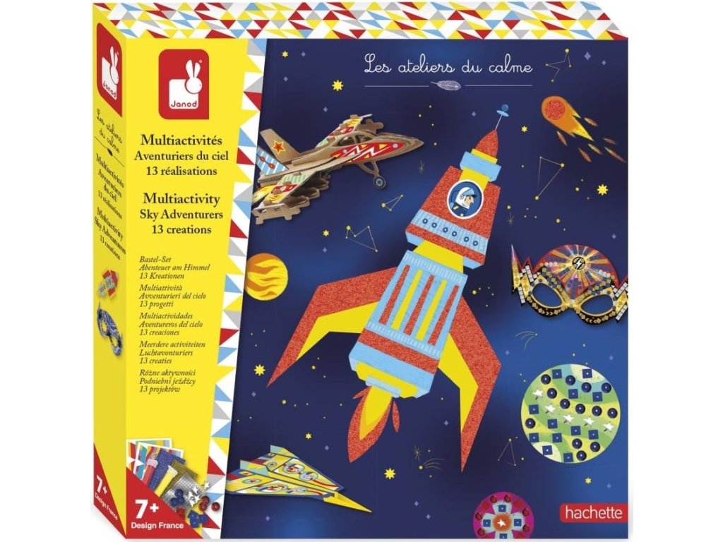 Deti si budú môcť vyzdobiť steny svojej spálne peknými maľbami, lietať s raketami po celom dome a prezliecť sa do svojich masiek vyrobených na mieru. Túto súpravu umeleckých remesiel možno prezentovať skupine detí, ktoré sa môžu všetky zapojiť do rôznych aktivít a rozvíjať svoju zručnosť a umelecký talent ako tím. Multiaktivitná remeselná súprava Sky Adventurers je súčasťou kolekcie Les Ateliers du Calme.