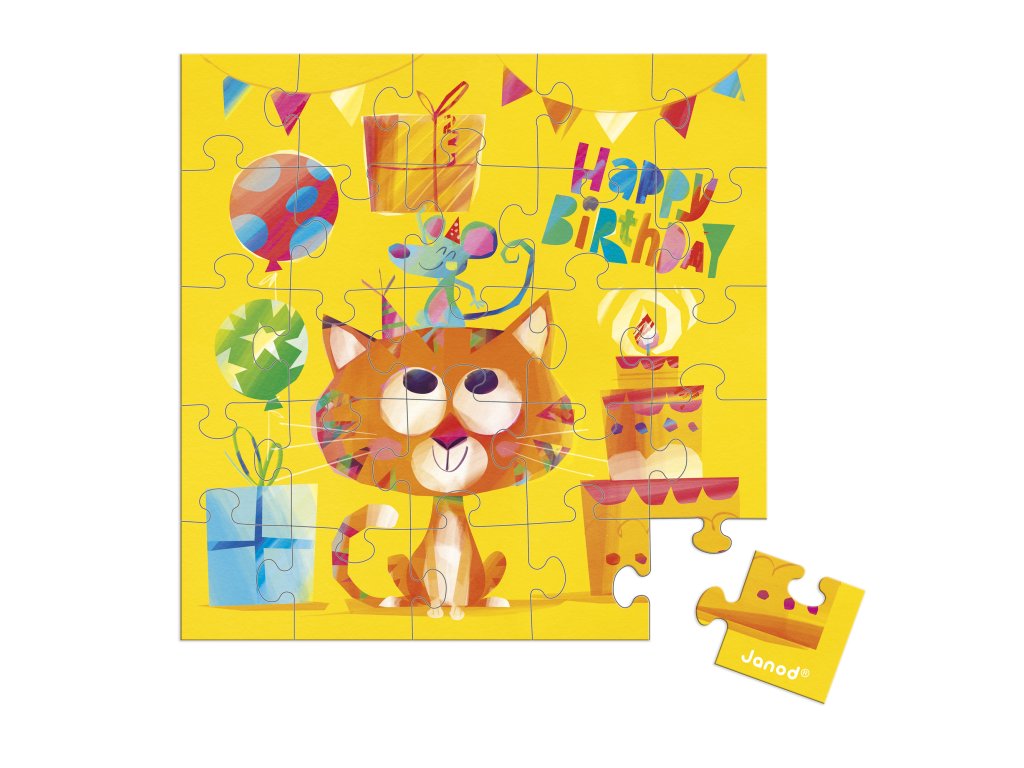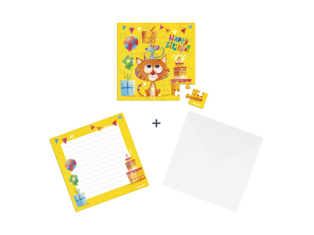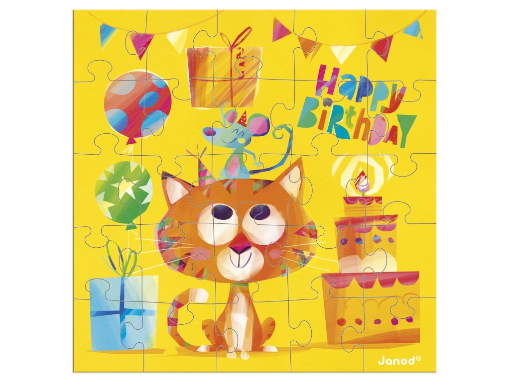 Janod Blahoželanie k narodeninám s puzzle Mačka