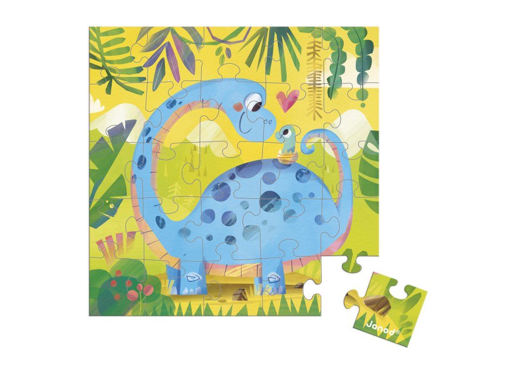 Janod Blahoželanie k narodeninám s puzzle Mama a baby Dinosaurus