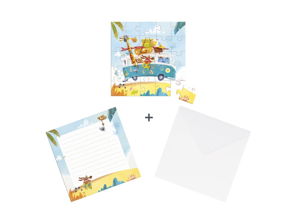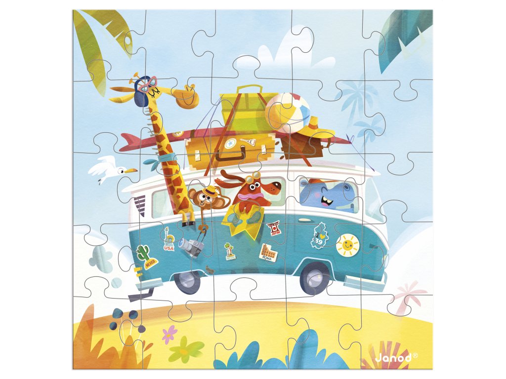 Janod Blahoželanie k narodeninám s puzzle Na cestách