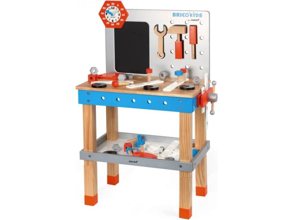 Janod drevený pracovný stôl BricoKids je veľmi zaujímavá drevená hračka vhodná pre chlapcov od 3 do 8 rokov.