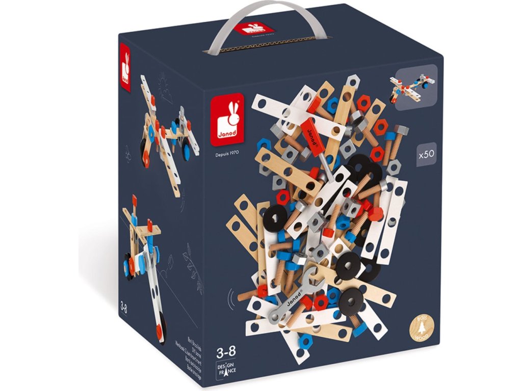 Detské náradie a skrutky pre malých majstrov BricoKids Janod je nadčasová drevená skladačka pre malých architektov.