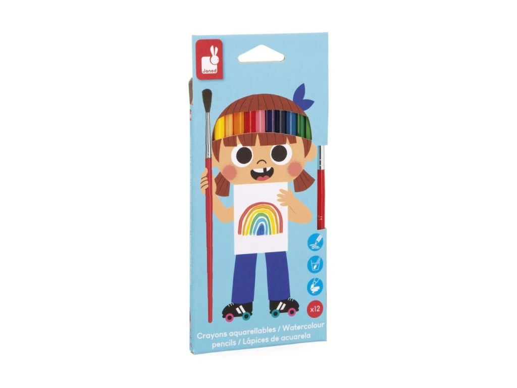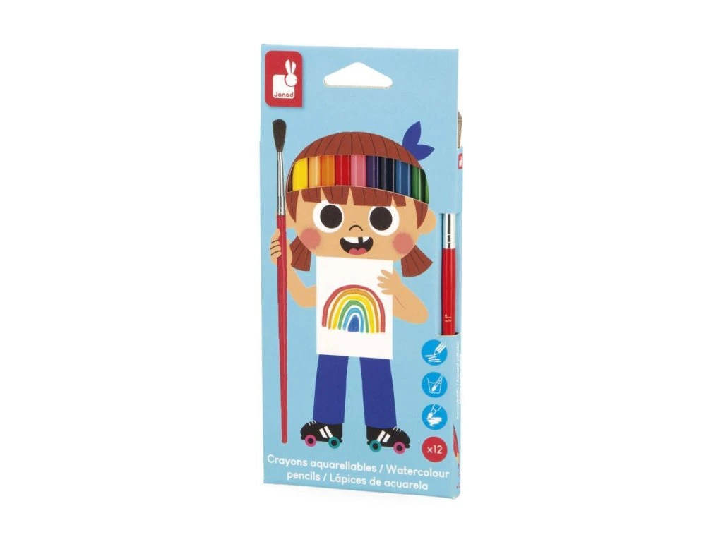 Táto sada 12 drevených farbičiek od Janod je vhodná pre milovníkov akvarelu.