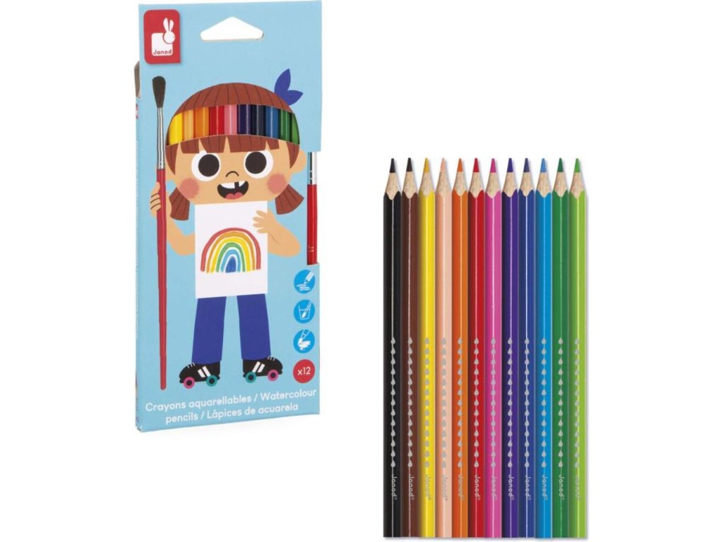 Janod Colorino Akvarelové farebné pastelky a štetec 12 farieb
