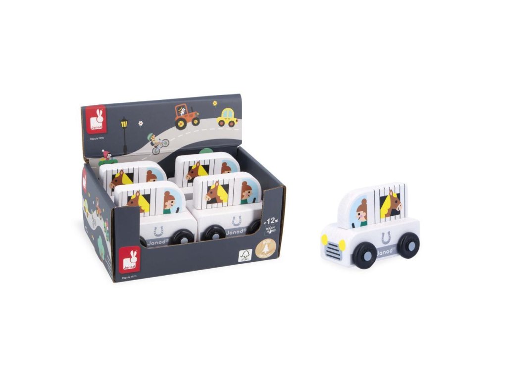 Janod Cross roads Drevené auto na tlačenie Auto s prívesom biele