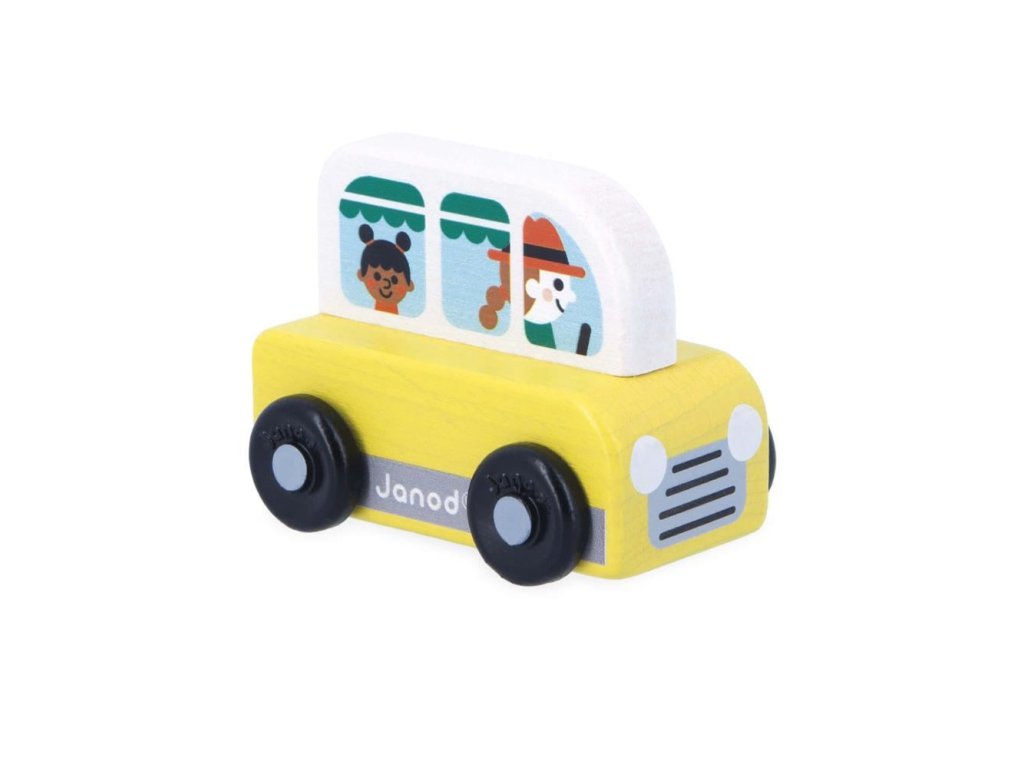 Janod Cross roads Drevené auto na tlačenie Dodávka žlté