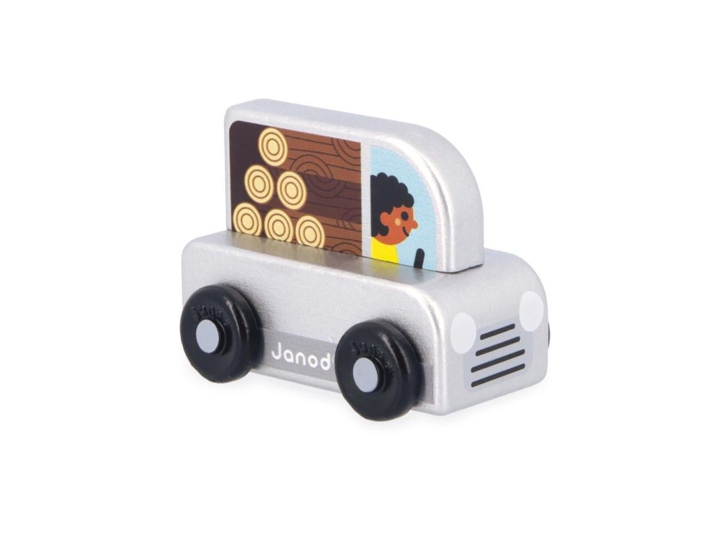 Janod Cross roads Drevené auto na tlačenie Pickup sivé