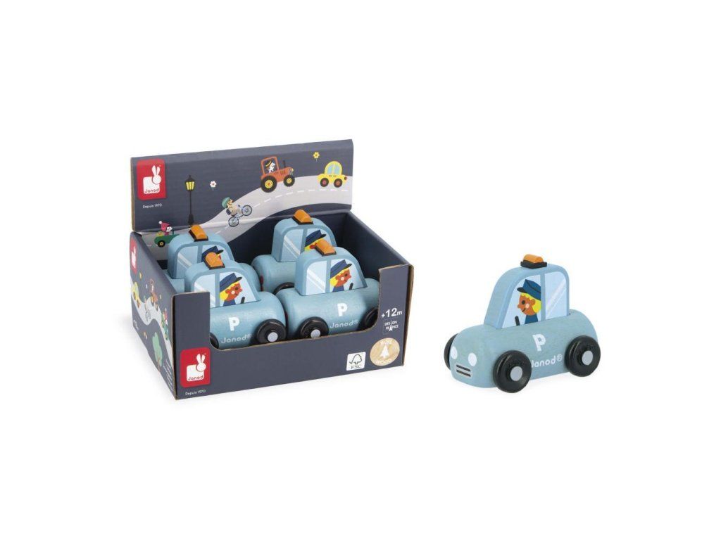 Janod Cross roads Drevené auto na tlačenie Polícia modré