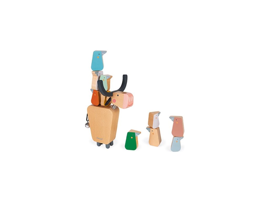 Janod Drevená balančná hračka Byvol a vtáčiky na jemnú motoriku