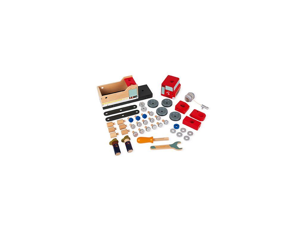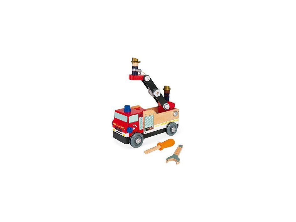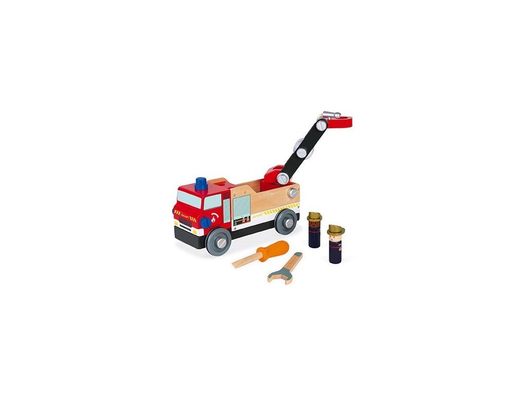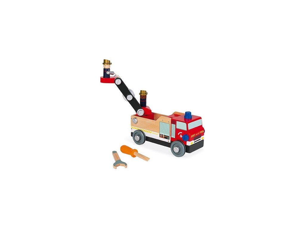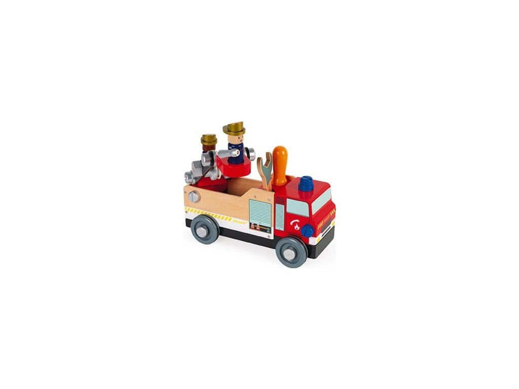 Janod Drevené auto a stavebnica Hasiči BricoKids