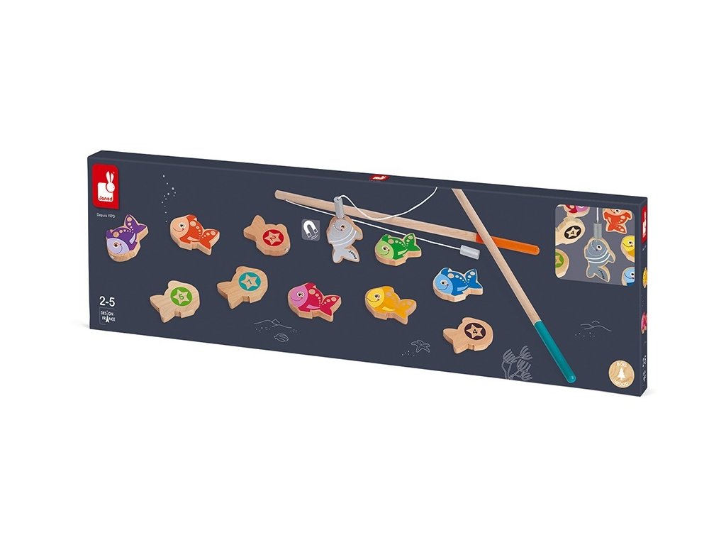 Janod Drevené magnetické rybárske udice pre deti Let's Go Fishing