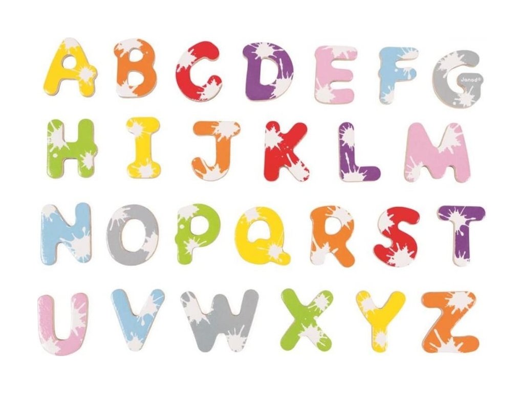 Janod Drevené magnetky abeceda Splash 52 ks