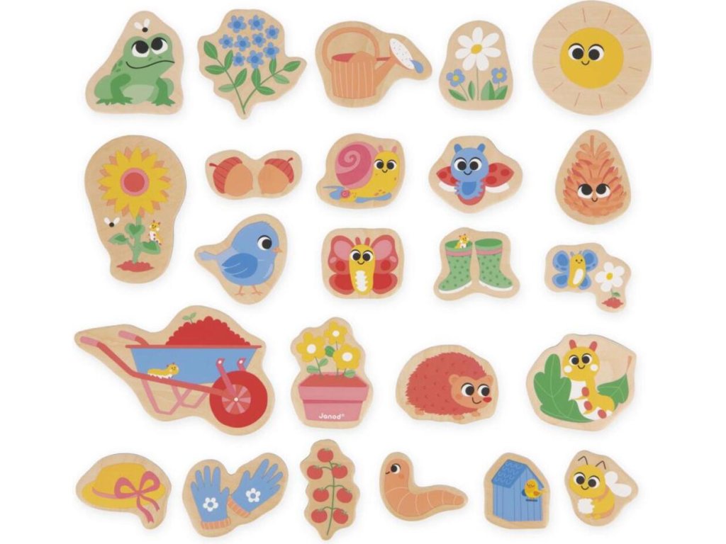 Janod Drevené magnetky pre deti Záhrada 24 ks