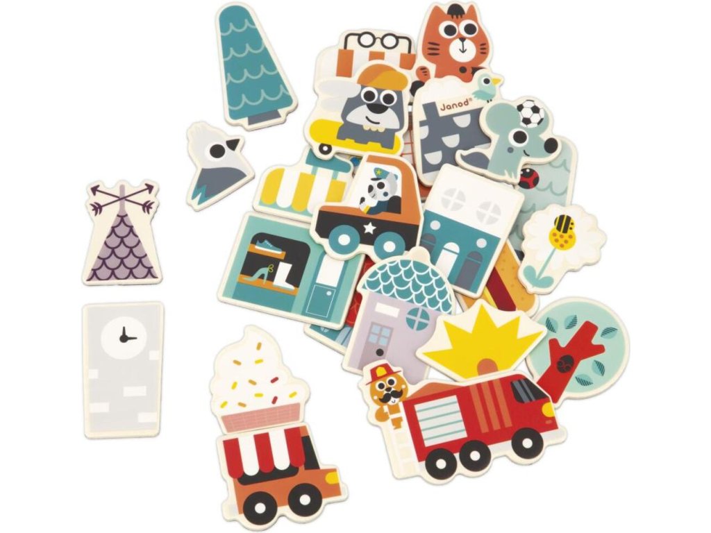 Táto sada obsahuje 24 drevených magnetiek, ktoré sa prilepia na magnetické tabule alebo akýkoľvek iný magnetický povrch.
