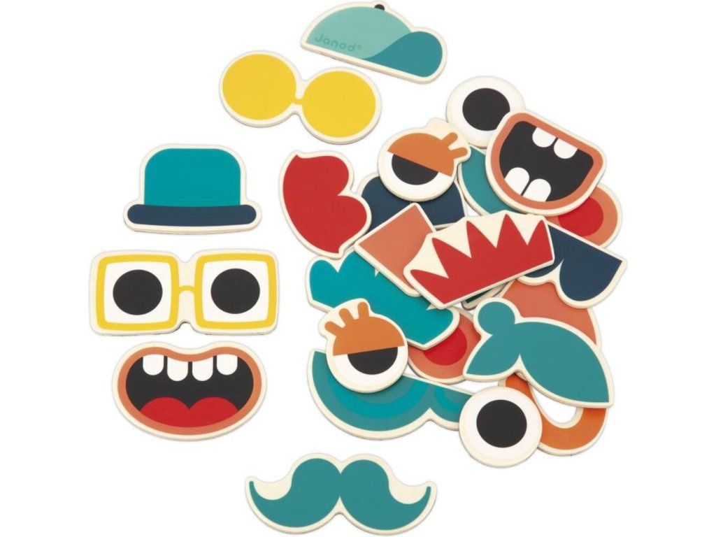 Janod Drevené magnetky Vytvor si zábavné tváre 24 ks